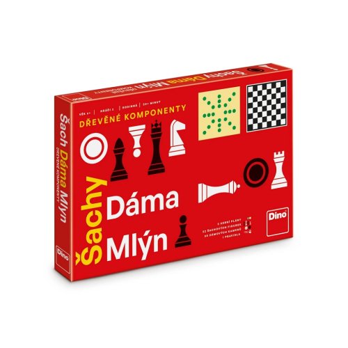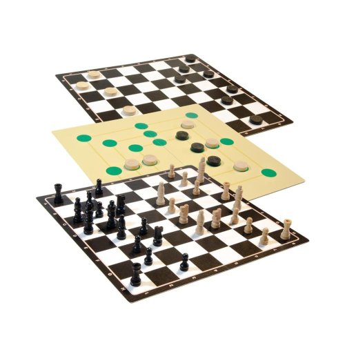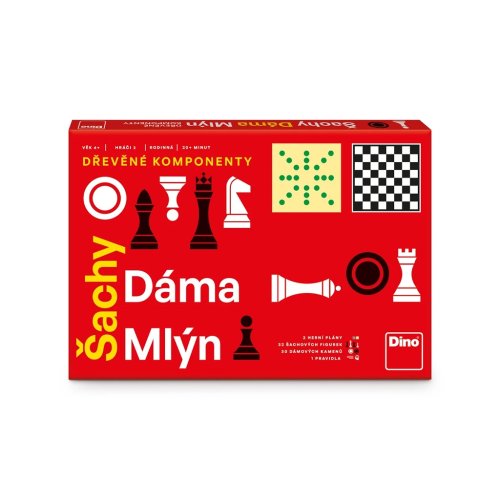 Tradičné hry šach, dáma, mlyn s drevenými komponentmi. Vek 6+.
