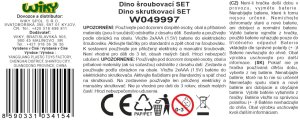 Dino skrutkovací set s elektrickým skrutkovačom. Veľkosť dinosaurov 20 cm. Sada obsahuje 3 dinosaurami, elektrický skrutkovač (17x12 cm), a manuálny skrutkovač. Návod na zostavenie je súčasťou balenia. Batérie 2xAAA, nie sú súčasťou balenia.