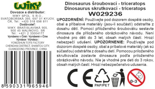 Dino skrutkovacie triceratops. Rozmery 16x4,5x8,5 cm. Balenie obsahuje dinosaura a skrutkovač.