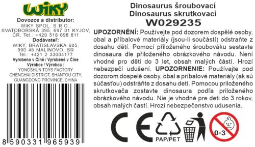Dino skrutkovacie. Rozmery 16x4,5x8,5 cm. Balenie obsahuje dinosaura a skrutkovač.