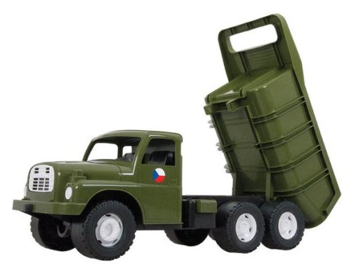 Sklápacie auto Tatra 148 v khaki zelenom prevedení - veľké a robustné plastové autíčko s poistkou proti nežiaducemu vyklopeniu korby. Deti do nej môžu bezpečne zasadnúť a voziť sa.