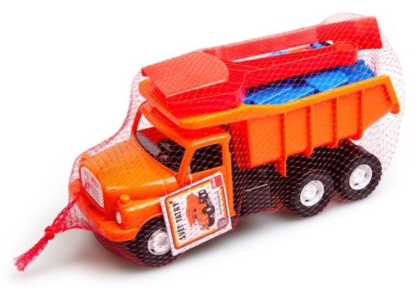 Vydajte sa na pieskovisko v plnej výbave, a to s legendárnou Tatrou 148 s korbou plnou hračiek na piesok. Detský nákladiak v nesmrteľnom oranžovom prevedení vezie nielen lopatku a hrable, ale aj dve formičky v tvare miešačky a ďalšieho nákladného auta. Rozmer auta: 30 cm Vhodné od 12 mesiacov