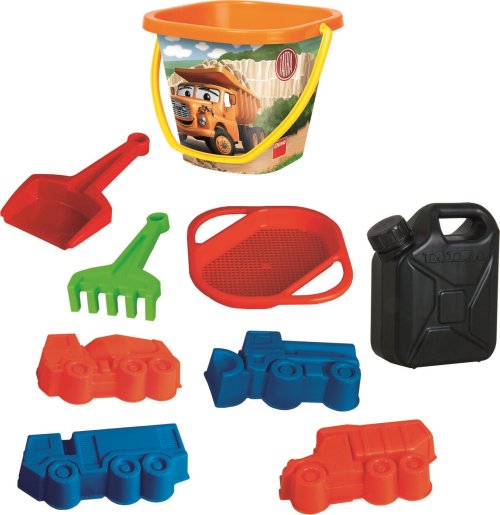 Tatra, bábovky, kýblik, lopatku... máte na pieskovisko zbalené naozaj VŠETKO? Ak sa vybavíte aj týmto deväťdielnym setom, potom určite áno. Obsahuje takmer všetko, čo k legendárnemu nákladiaku môžete potrebovať. Štvorica formičiek, náradia, kanister, sitko i vedierko strhnú k piesočným hrátkam nielen deti, ale aj vás.