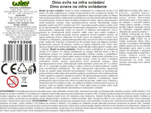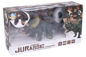 Dino Triceratops RC na diaľkové ovládanie. Veľkosť 24 x 11 x 8 cm. IR ovládač. Svietiace oči a otváracia papuľa. Pohyb dopredu a dozadu. Výber 3 frekvencií (A, B, C).