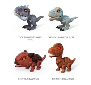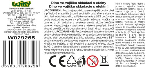 Dino vo vajíčku skladacie s efektmi. Vajíčko obsahuje diely na zloženie dinosaura a návod. Súčasťou sú oči do ktorých sa vkladajú batérie – svietia a vydávajú zvuk. Oči sú jedným z dielikov skladačky dinosaura. 4 varianty - tyrannosaurus, velociraptor, ankylosaurus, brachiosaurus.