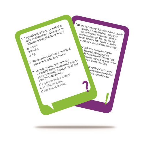 V balení je 150 inšpiratívnych otázok, ktoré otvoria cestovateľskú fantáziu všetkým vášnivým svetobežníkom.