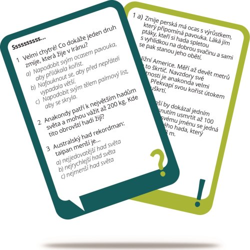 Môže vás príroda ešte niečím prekvapiť? Samozrejme. Dosť možno to bude už prvá otázka, ktorú si vytiahnete pri zábavnej vedomostnej hre v cestovnom balení. Kvízy do vrecka u nás zaobstaráte na rôzne témy, tentoraz práve s otázkami o úžasnej prírode. Koľko váži anakonda? Aký rekord drží taipan menší? Blysknite so svojimi znalosťami! Na každej karte sa nachádzajú vždy dve otázky. Odpovede uvidíte po otočení na druhej strane. Cestovné balenie je ideálne na výlety, dlhé cesty autom a pokojne aj do školského batoh Balenie obsahuje: 53 obojstranných kariet s otázkami. Vhodné pre deti od 12 rokov.