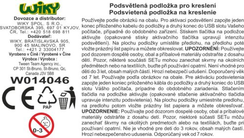 LED svetlo s 3mi úrovňami jasu, ultratenká podložka s kresliacim svetlom, kábel USB, 5 obojstranných pasteliek, čierne kresliace pero, vzorové stránky, 10 vytlačených obkresľovacích listov