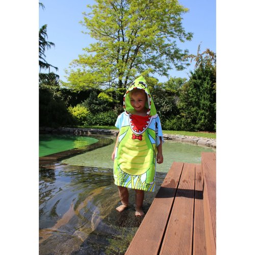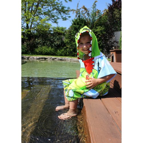 Uterákové pončo pre deti Merco Dinosaur je ideálnym doplnkom na pláž či k bazénu. Je vyrobené zo 100% polyesteru, skvele saje a vaše dieťa bude tak behom chvíľky suché. Pončo je ľahké a skladné, zaberie minimum miesta vo vašej taške či kufri. Voľný strih umožňuje ľahké prezliekanie. - materiál: 100% polyester - rozmery: 60 x 60 cm (bez kapucne) - hmotnosť: cca 230 g