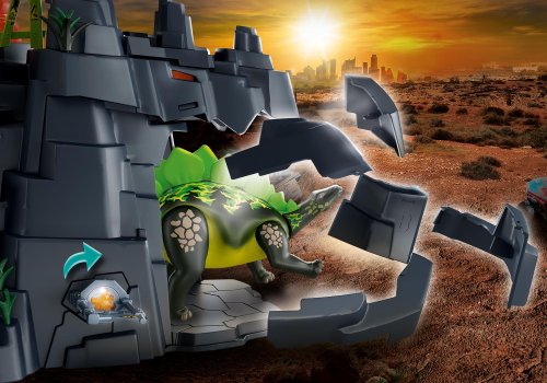 Pripravte sa na veľkú bitku pri dinosaurej skale! Roboti sa pripravujú na boj s veľkými dinosaurami a obrnenými rytiermi. Medzitým sa však dinosaury bránia a snažia sa zachániť históriu Dinosaurov. Ku ktorému tímu sa pridáš? DINO RISE je akčná herná téma sústredená na odhodlaný tím priateľov. Skala zahŕňa svetlá, zvukové a vibračné efekty. Súprava pomáha otvárať viac vzrušujúcich príležitostí pre zábavu a hranie. Vhodné pre deti od 5 rokov. PLAYMOBIL sú stavebnice pre deti rôznych vekových kategórií, ktoré sú tematicky zamerané a majú mnoho prepracovaných doplnkov. Dieliky sú hygienické, ľahko umývateľné a nepúšťajú farbu. Stavebnice Playmobil podnecujú fantáziu, kreativitu a podporujú detský vývoj.