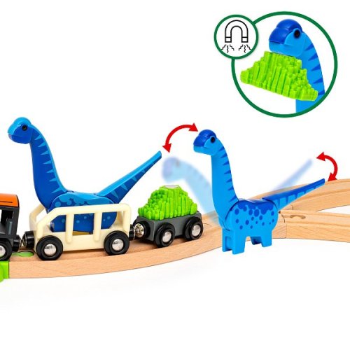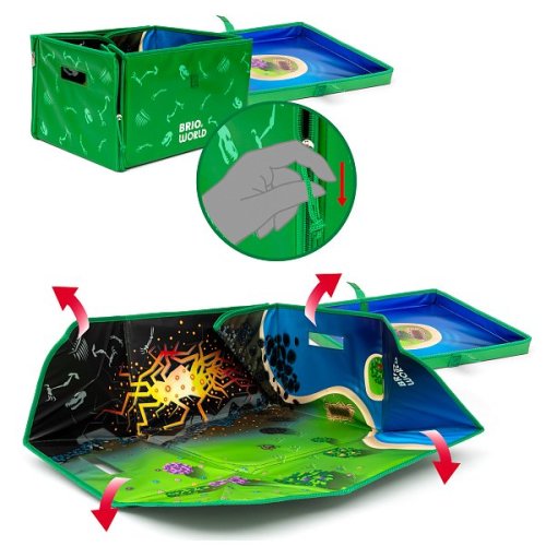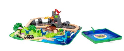 Preskúmajte svet dinosaurov v Dinosaurie vlakovej sade deluxe. Táto 45-dielna vláčikodráha je jurskou džungľou plnou zábavy a príbehov, doplnenou sopkou so svetlami, zvukmi a efektmi pary. Pripojte sa k 8 dinosaurom v žiarivých farbách s jedinečnými funkciami, ako sú napríklad pohyblivé končatiny a klasické magnety BRIO, ktoré zaistia interakciu s okolitým svetom. Súčasťou sady je praktický úložný box, ktorý je možné po rozložení využiť ako hernú podložku pre ešte intenzívnejšie dino dobrodružstvo. Dinosauria luxusná sada obsahuje 45 dielov: 8× figúrky dinosaurov, 1× vybuchujúcu sopku, 1× lávovú jaskyňu, 1× trávnatú jaskyňu, 1× vláčik s dinosaurou tematikou a vagónikmi, 4× tematické koľajnicové diely, 3× železničné /výhybiek a veľa doplnkov. Sopka funguje na 2 batérie AA, ktoré nie sú súčasťou. Rozmery balenia: 32,7 x 38,6 x 23,2 cm. Vek: 3+