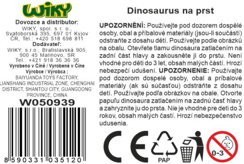 Dinosaurus na prst. Veľkosť 8 cm. Otvárateľná papuľa, pohyblivé končatiny a chvost. Viac variantov.
