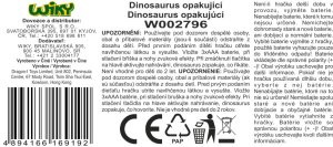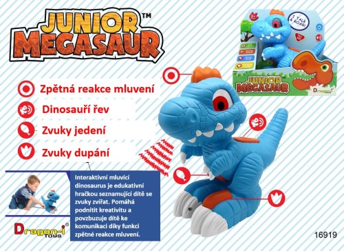 S hovoriacim dinosaurom si užiješ veľa zábavy! Po stlačení tlačidla na chrbte vydáva pravý dinosaurí rev! Keď mu stlačíš bruško, tak sa zase ozývajú zvuky ako pri jedle! A čo noha? Stlač s počúvaj, ako sa ozýva dinosaurie dusot! Najlepšie však príde nakoniec! Stlač hrebienok! Aktivuješ tak funkciu nahrávania a dinosaurus bude opakovať tvoje slová!