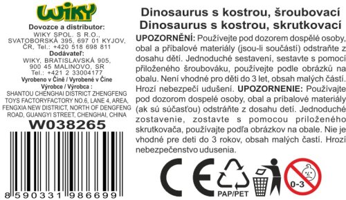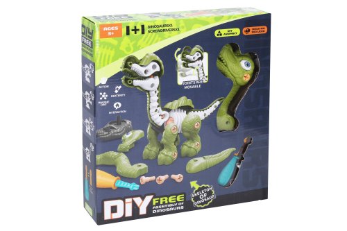 Dinosaurus s kostrou skrutkovacou. Obsahuje: dinosaurus, skrutkovač, náhradná koncovka skrutkovača a skrutky.