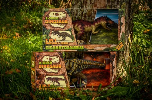 Dinosaurus obojstranný veľký Animal World – dvojstranná figúrka dinosaura – z jednej strany kostra dinosaura az druhej strany dinosaurus. 2 rôzne druhy dinosaurov. Veľkosť figúrky 30 cm.
