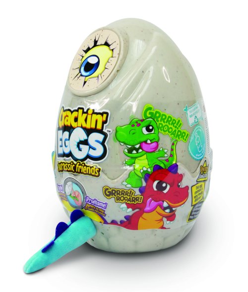 Dinosaurus vo vajíčku, ktoré mu stlačíš chvostík a on začne revať a triasť sa. K dostaniu v 3 rôznych designoch.