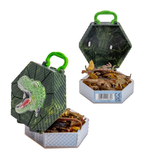 6 figúrok dinosaurov s dĺžkou 8-9 cm v jednej krabičke (boxe) s motívom T-Rexa a uchom na pohodlné nosenie.
