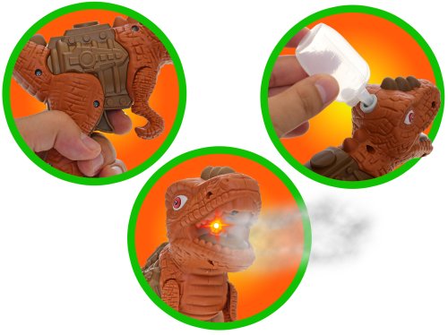 Dinoworld dinosaurus 17 cm na batérie so svetlom a zvukom vytvárajúci paru - mix farieb (hnedá, zelená)
