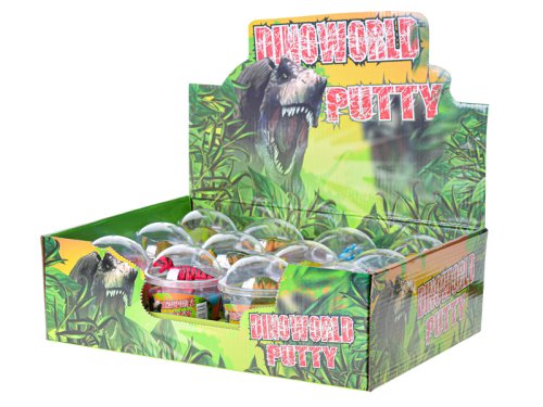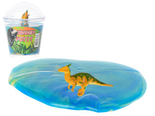 Sliz, ktorý ukrýva malé prekvapenie v podobe dinosaura. Túto hmotu je možné rôzne naťahovať, rozťahovať a stláčať.