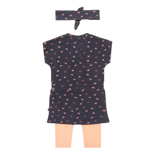 Materiálové zloženie: šaty + čelenka 95% bavlna 5% elastan, legíny 60% bavlna 35% polyester 5% elastan