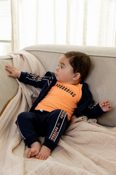 Materiálové zloženie: mikina + nohavice: 95% bavlna 5% elastan; tričko 62% polyester 33% bavlna 5% elastan