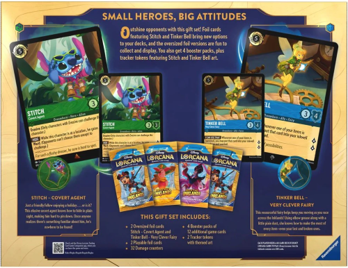 Disney Lorcana: Into the Inklands je už treťou sériou novej TCG hry. Vydajte sa do vzdialených a neznámych kútov ríše Lorcana. Balenie obsahuje: 2 nadrozmerné fóliové karty, 2 hrateľné fóliové karty, 34 herných žetónov a 4 Booster Packy (v každom 12 náhodných kariet).