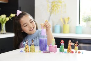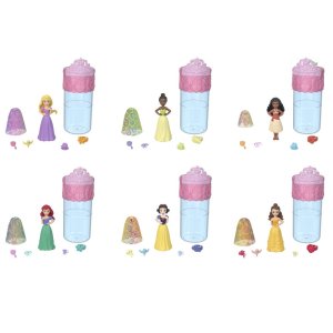 Tieto malé bábiky s motívom záhradnej párty ponúkajú vzrušujúci zážitok pri rozbaľovaní vďaka technológii zmeny farby Color Reveal™ a nečakanému počtu doplnkov. Každé balenie obsahuje malú bábiku s prekvapením Color Reveal™, napríklad Ariel, Bellu, Vaianu, Lociku, Snehulienku a Tianu, pri ktorých pridanie vody odhalí vzhľad danej princeznej. Prekvapenia zahŕňajú dúhovú sukňu z mäkkého materiálu, doplnky na záhradné párty, prsteň a čelenku pre dievčatko a veko, ktoré slúžia ako stôl na párty.