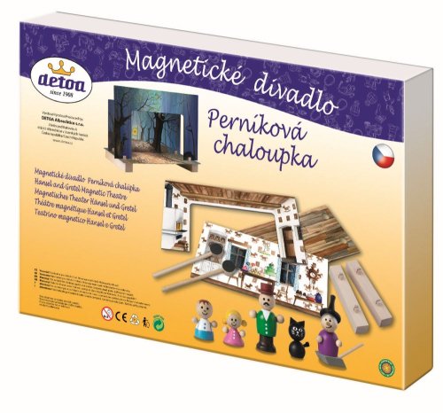 Magnetické divadlo Perníková chalúpka je výborná zábava pre malých aj veľkých na motívy obľúbenej rozprávky. Vo figúrkach je vlepený magnet, ktorý sa priťahuje k magnetu vo vodítku.
