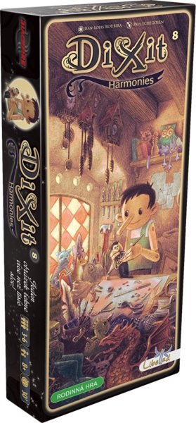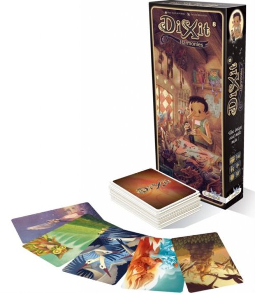 Dixit 8: Harmonies neobsahuje bodovaciu stupnicu, figúrky a tipovacie žetóny - je hrateľné iba so základným vydaním hry Dixit alebo Dixit Odyssey.