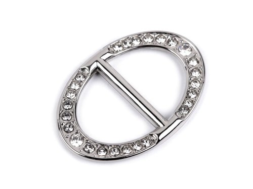 Kovová spona je vysadená trblietavými brúsenými kamienkami, vďaka ktorým pôsobí elegantne. Vynikne ako ozdoba plesových a večerných šiat alebo doplnkov (písniček, kabeliek a pod.). Je vhodná na výrobu tenkých pásikov.