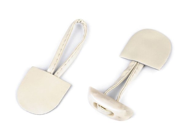 Zapínanie z eko kože pôsobí elegantne. Využijete ho na kabáty, svetre, saká alebo kožuchy. Je vhodné aj na šitie duffle coat. Zapínanie môže byť rozlepené, čo nie je dôvod na reklamáciu - jedná sa o polotovar, ktorý je nutné prešiť.