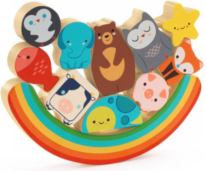 drevená podložka s dúhovou základňou 11 drevených dielikov so zvieratkami