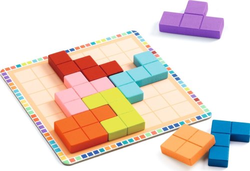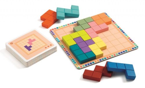 Drevený hlavolam na precvičenie prstov i mozgových buniek. Zostavte časť štvorca pomocou predlohy a následne kocku doskladajte.