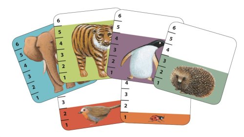 Zábavná hra Kto z koho. Ktoré zviera má väčšiu silu? Hráči postupne otáčajú karty zo svojho balíka a ten, kto má na obrázku väčšie zviera, berie karty ostatných. Na každej karte je vyznačený meter, takže aj malé deti jednoducho spoznajú, ktoré zviera prebíja ostatných. Vhodné pre deti vo veku 3-6 rokov