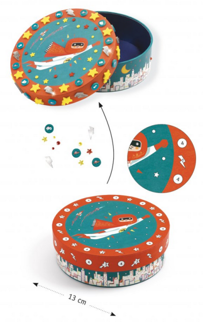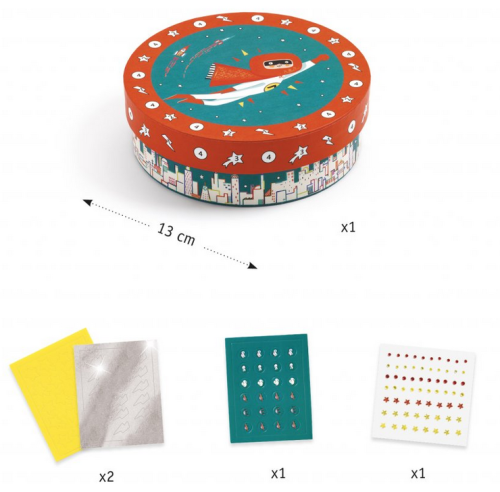 Krásna krabička so superhrdinom určená na dozdobenie. Dozdobte krásnu krabičku pomocou samolepiacich kamienkov a drahokamov. Po dozdobení si dovnútra môžete schovať všetky svoje drobné poklady. Vhodné pre deti od 5 rokov. Tento výrobok nie je hračka. Ide o dekoratívny predmet.