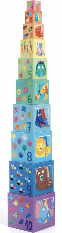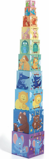 Obľúbená krabičková veža s ilustráciami mamičiek a ich mláďat. Deti bavia stavať vysokánsku vežu a zase ju boriť, vkladať kocky do seba a postupne sa učia základné počty, farby, tvary, rozprávajú sa o vyobrazených zvieratkách. Balenie obsahuje: 10 kociek Výška postavenej veže: 89 cm