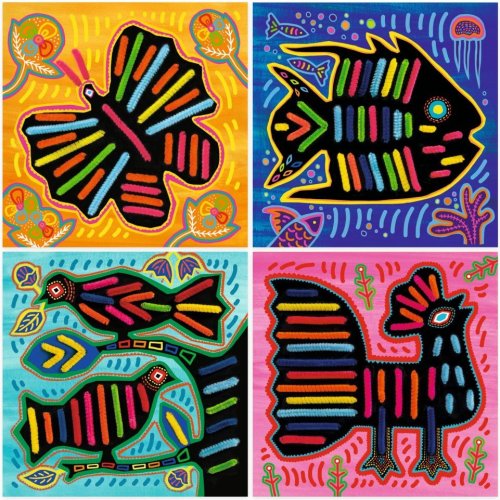 deti podľa návodu prevliekajú ženilkové drôtiky veľkými otvormi v obrázku a tým dotvoria nádherný farebný dizajn inšpirovaný mexickým umením veľmi jednoduchá aktivita aj pre menšie deti na precvičenie fantázie a motoriky balenia obsahuje: 4 pevné ilustrované karty s otvormi (20 x 20 cm), 130 ženilkových drôtikov a návod