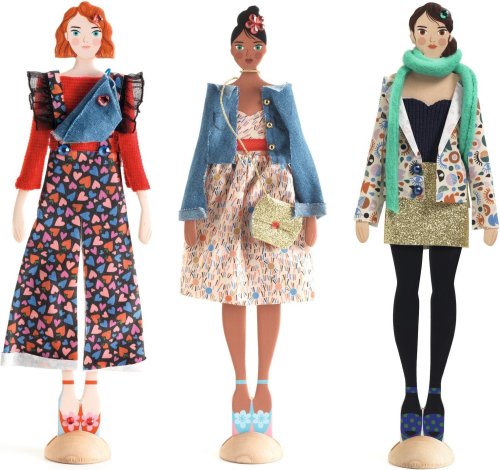 Postupujte podľa návodu a vzory a diely jednoducho zostavte bez šitia. Potom už stačí len ozdobiť oblečenie mnohými dodanými doplnkami a vystaviť svoje návrhy na 3 stojace bábiky. Balenie obsahuje: 3 bábiky, 3 drevené podstavce, 1 potlačená látka, 4 látky z rôznych materiálov, 5 prámikov alebo stuh, 2 dĺžky elastickej šnúry, 1 sáčok s korálkami a drobné doplnky, 1 hárok samolepiacich kamienkov, 1 nožnice, 1 rolka oboch , 1 pero a 3 šablóny.