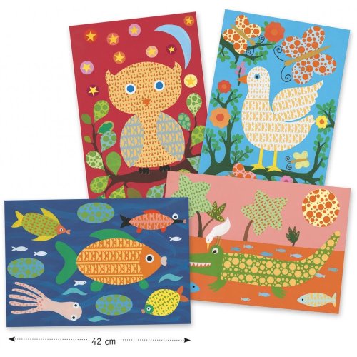 Postup je jednoduchý: Vyberte si pozadie a zvieratko, ktoré budete dokrášľovať. Časti zvieratka jednoducho vylomte s hárkom a umiestnite na podložku, na ktorej budete s obrázkom pracovať. Pomocou šablónovej pásky a farbičiek dodajte častiam zvieratka osobité zdobenie a nechajte zaschnúť. Po úplnom zaschnutí zvieratko skompletizujte a obrázok je hotový.
