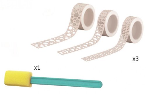 Kreatívna sada na maľovanie obrázkov pomocou šablónových pásikov a hubky.