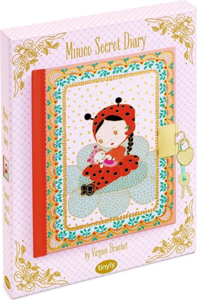 Nádherný tajný zápisníček so zlatými detailmi s motívmi Tinyly Minico, do ktorého si môžete zapisovať a kresliť všetky svoje tajomstvá.