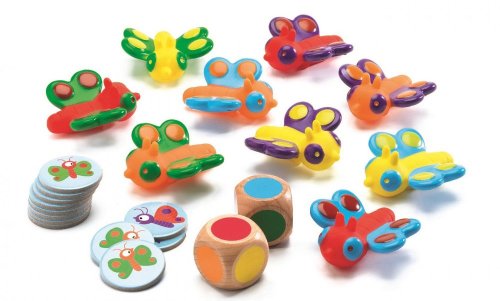 Zábavná hra pre najmenšie deti, ktorá ich bude baviť. Umiestni všetky motýliky na stôl. Prvý hráč hodí kockami. Kocky ukážu farebnú kombináciu. Hráč, ktorý ako prvý chytí motýlika vo farebnom prevedení, aké ukážu kocky, vyhráva žetón. Napr. kocka ukáže modro, červenú kombináciu - hráč vyberie motýlika s modrou červenou farbou. Vyhráva hráč, ktorý má najskôr 5 žetónov. Vek: od 2,5 roka Počet hráčov: 2-4 Balenie obsahuje: 9 motýlikov, 2 kocky, 30 žetónov.