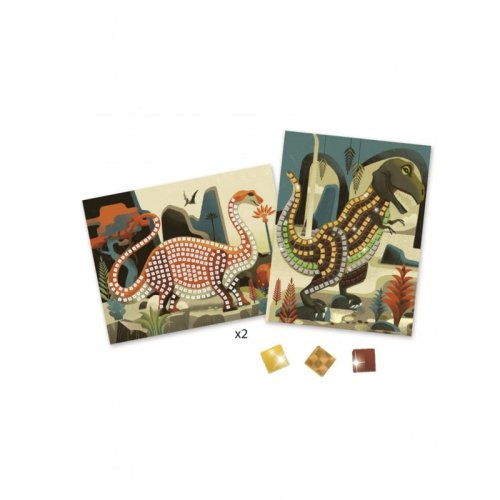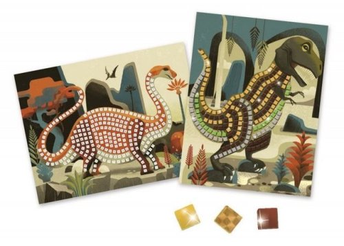 Vytvor dva krásne sa trblietajúce mozaikové obrázky dinosaurov.