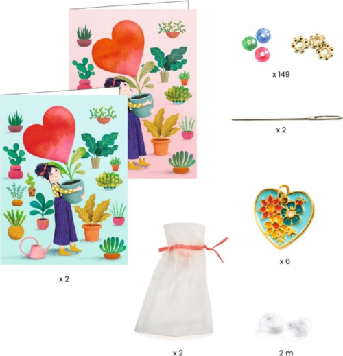 roztomilá sada v krásne ilustrovanej krabičke na výrobu dvoch náramkov z lásky dva vzácne šperky na uschovanie alebo darovanie v malom organzovom sáčku ako krásny detail sú priložené aj dve darčekové kartičky na napísanie odkazu k darčeku