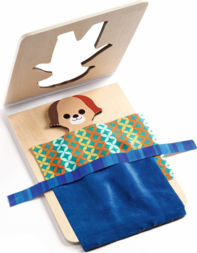 Zábavná sada, kedy deti prikladaním látok rôznych textúr, vytvára originálne modely pre psíka. Drevená základňa sa otvára a zatvára, čo umožňuje vloženie látky a jej zaistenie na mieste, aby sa nehýbala. Po priklopení tak dostávate nové a nové kombinácie.
