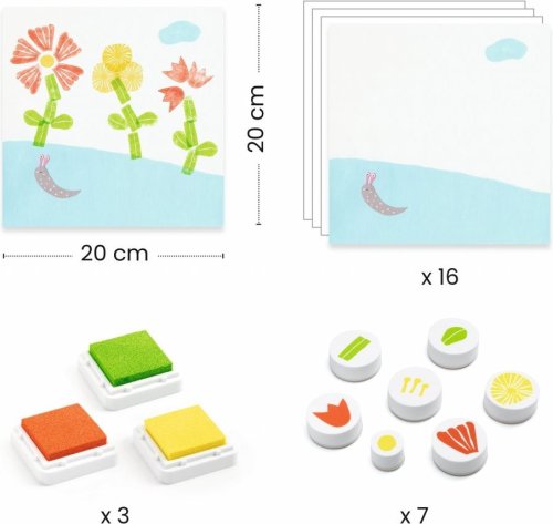 Sada pečiatok s kvetinovým a prírodným motívom pre deti na vytvorenie roztomilých obrázkov.
