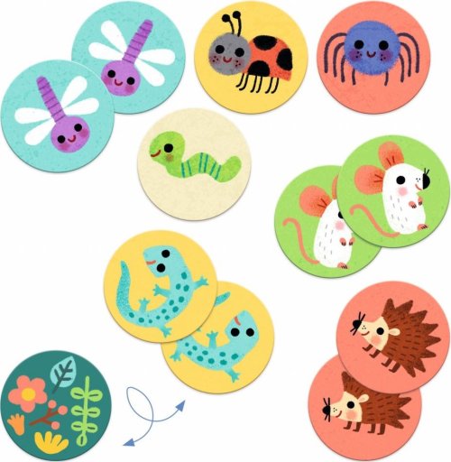 kartónové kartičky, ktoré sa ľahko uchopia rozvíja pozorovacie a pamäťové schopnosti krabice v tvare kocky, ktorá sa ľahko a zábavne prepravuje pomocou povrázku vyrobené z papiera a kartónu s certifikáciou FSC® balenie obsahuje 32 kartičiek