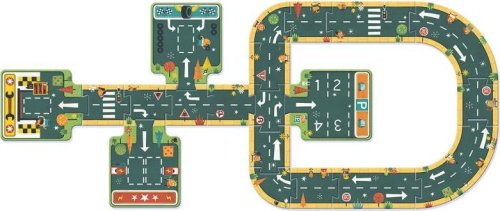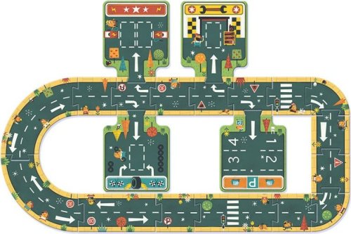Z puzzle je možné poskladať niekoľko variantov cestných okruhov (viď obal) a jazdiť po zostavených cestách s autíčkami, na stole či na podlahe. Rozmer zloženého puzzle cca 72 x 63 cm