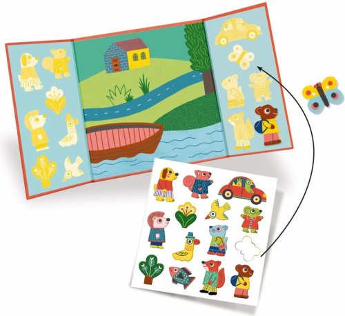 Deti môžu zvieratká umiestňovať do krajiny alebo hľadať správne miesto pre konkrétnu samolepku podľa obrysov. Premiestniteľné samolepky sa môžu stále dookola aplikovať. Ideálne na cesty. Samolepky sú vhodné pre deti od 18 mesiacov. Veľkosť rozložených dosiek je 43 x 23 cm. Balenie obsahuje: 13 premiestniteľných samolepiek a dosku s motívom krajiny.