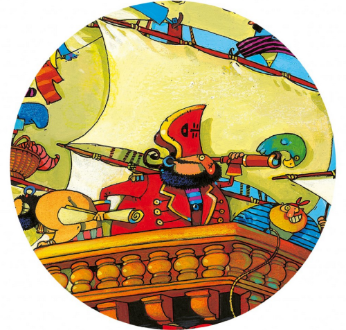Puzzle s motívom pirátskej bitky v krásnej tvarovanej krabičke. Rozmer zloženého puzzle cca 37 x 40 cm